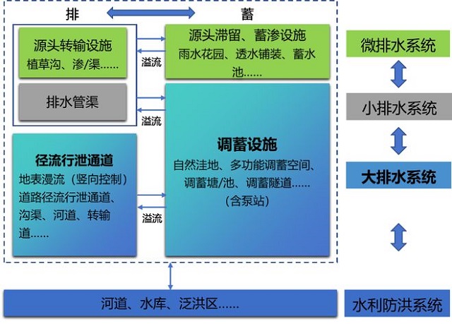 超標徑流蓄排系統:也稱大排水系統,負責有序地將超過排水管渠能力的雨水通過行泄和調蓄等措施安全控制,是城市洪澇韌性的核心,也是目前很多城市的短板。