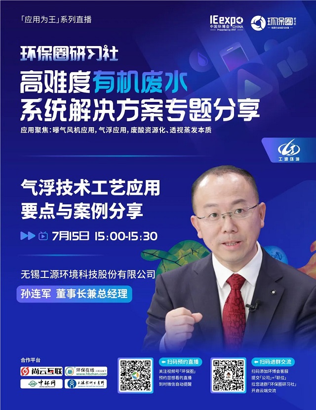 本場直播由工源環(huán)境董事長兼總經(jīng)理孫連軍先生——擁有近30年環(huán)保行業(yè)從業(yè)經(jīng)驗(yàn)的環(huán)保人,親自為您講解氣浮技術(shù)工藝應(yīng)用要點(diǎn),并帶來大量現(xiàn)場應(yīng)用實(shí)例展示,如果您的項(xiàng)目有提標(biāo)除磷、河湖水體除藻治理、高濃廢水(廚余垃圾、屠宰、養(yǎng)殖、垃圾滲濾液、化工廢水等)這些困擾,更不能錯過本場直播!