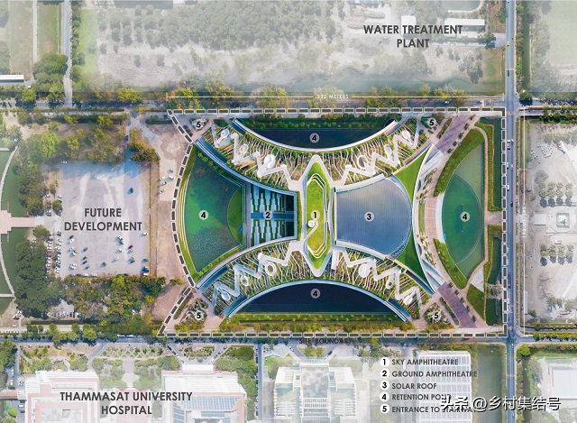 于是,為了振興其所處的土地,泰國國立法政大學(Thammasat University),在設計師的幫助下,重新利用了建筑上被忽視的236806平方英尺的(約22000平方米)屋頂空間,包括有7000平方米的農業區,打造了一個亞洲最大的屋頂有機農場。農場融合了可持續糧食生產、能源再生、有機廢物、水資源管理,創造了校園綜合循環經濟,同時農場還可滿足城市休閑,是一處公共活動空間。接下來,小編就說一說這座屋頂農場的具體設計。