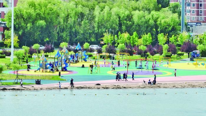 綠脈織網,河湖共治。濱水綠道沿黎明河建設,從北向南串聯起了薩爾圖區的南北城區,沿途連通了薩北湖、蘭德湖、濱洲湖、黎明湖、萬寶湖、三永湖等湖泊。項目與大慶市已開展的湖泊治理工程相銜接,通過濱河、濱湖綠化緩沖帶建設,減少地面徑流污染;湖泊濕地凈化后的雨水回補黎明河后,又能提升河道水質,達到河湖互補共治的效果。