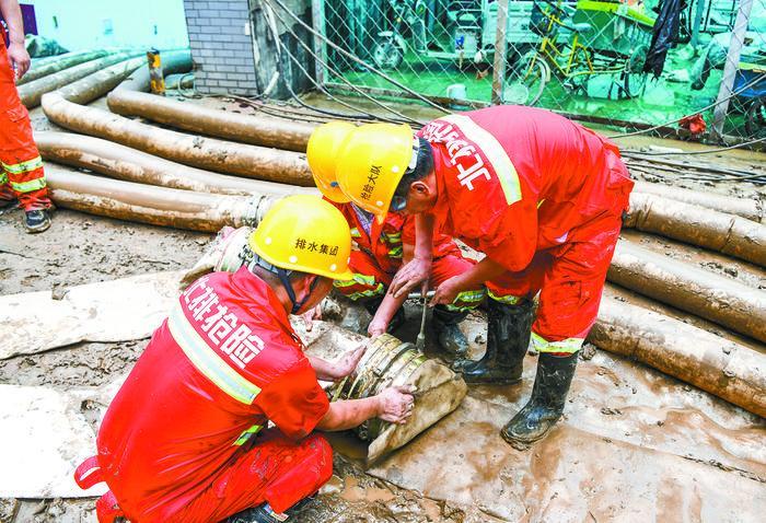 搶險人員正在安裝排水管。 本報記者孫宇楓攝