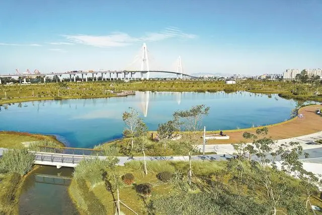 “公園設計時便考慮到了這一點,通過園內(nèi)池塘的水流調(diào)蓄功能、透水混凝土路面的滲水功能、綠地草坪草溝的凈水功能,能有效解決內(nèi)澇難題。”汕頭市濠江區(qū)建設工程代建中心主任張漢標表示,公園內(nèi)的海綿體系如同“毛細血管”,雨水經(jīng)此進入市政管道、排入海水中,從源頭控制雨水徑流,增加末端調(diào)蓄空間約2萬立方米,達到雨水的滲透、滯留、凈化,實現(xiàn)“小雨不積水,大雨不內(nèi)澇”。
