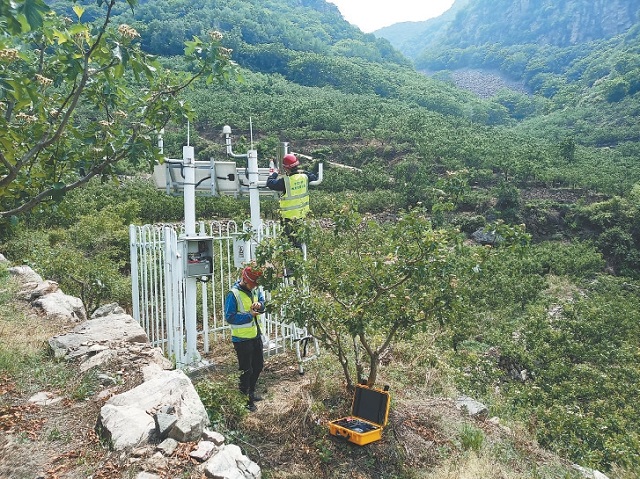 汛期前,工作人員對專業監測設備進行維護抽檢,確保突發地災監測預警系統平穩運行。