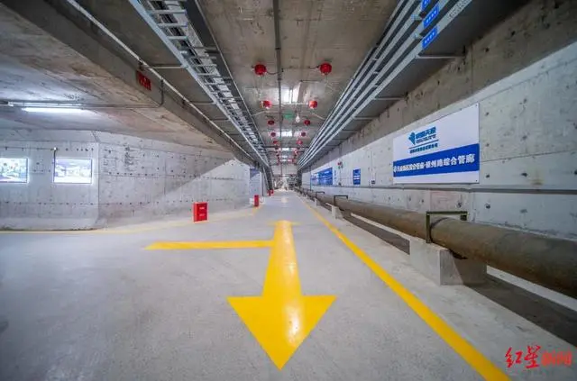 “整個空間按照雙層五艙斷面標準建設(shè),總共5個艙室。其中上層分別為燃氣艙、綜合艙和雨污水艙,下層設(shè)有輸水艙和高壓電力艙?!崩顟c介紹道,由于附近空間條件有限,“雙層艙”的設(shè)計因地制宜,可以更好地節(jié)省空間。