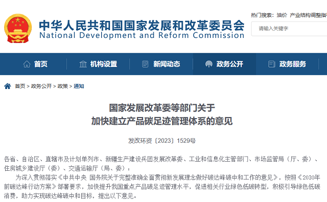 國(guó)家發(fā)改委加快建設(shè)產(chǎn)品碳足跡