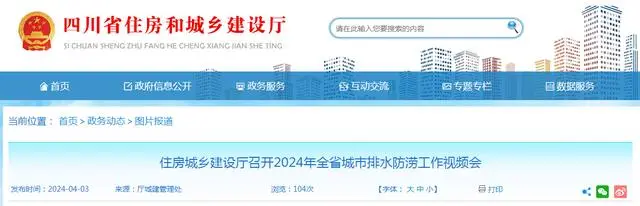 四川省住房和城鄉建設廳召開2024年全省城市排水防澇工作視頻會