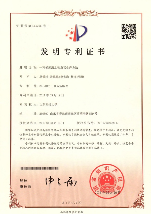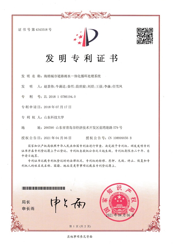 助推海綿城市道路發(fā)展授權多項發(fā)明專利