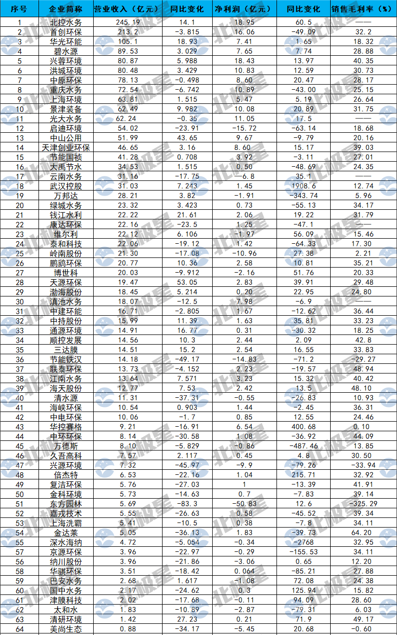 64家環保水務上市公司排行,北控、首創、華光環能三位百億大咖!