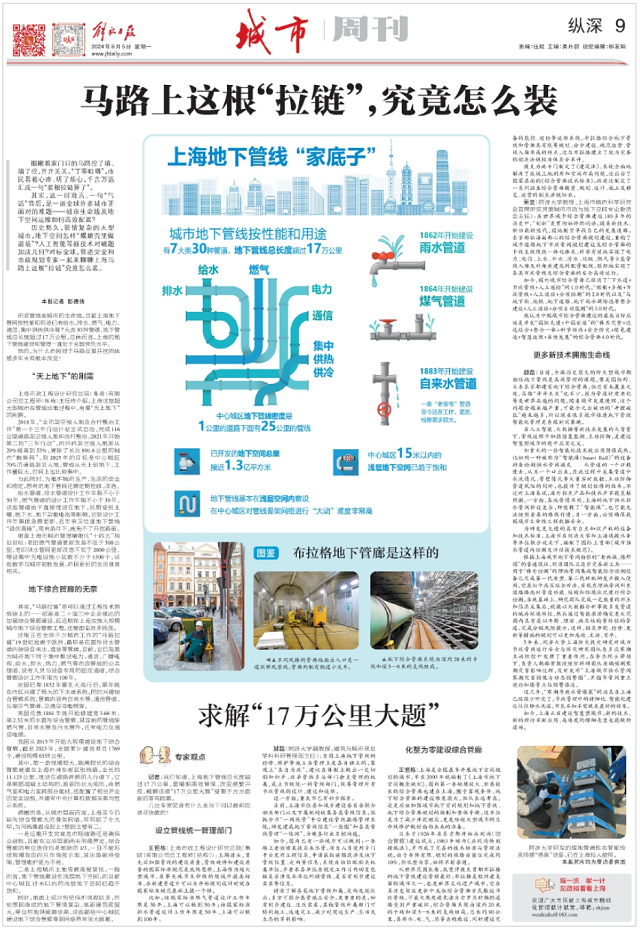 日前,《解放日報》記者訪談了上海市政總院總工程師(結(jié)構(gòu))王恒棟,就城市地下管線建設(shè)和管理方面作深入探討,文章刊發(fā)于8月5日出版的《解放日報》縱深專欄,原標(biāo)題為《馬路上這根“拉鏈”,究竟怎么裝》。