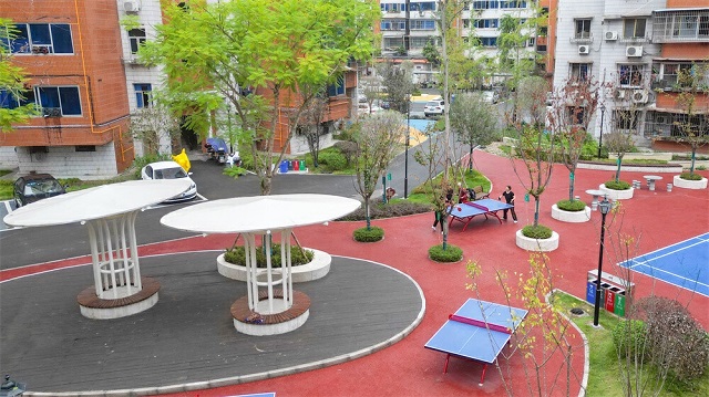 改造后,電力小區(qū)一躍成為群眾紛紛向往的“海綿小區(qū)”,龍翠華那些搬走的鄰居,又相繼搬回來了。低洼積水區(qū)變成栽滿各種綠植的雨水花園,破舊的道路、廣場變成五彩游步道,狹小、陰暗的角落變成80多個透水停車位,步行爬8樓變成電梯“一鍵”直上……