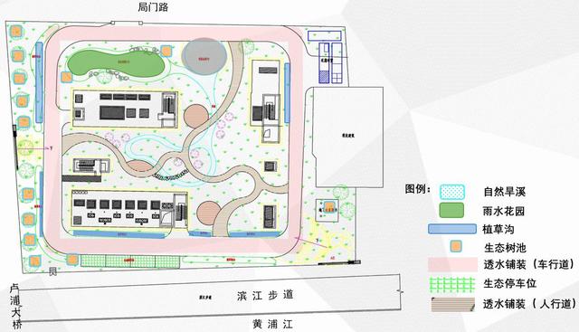 蒙自泵站擁有三個(gè)“第一”——上海第一座多功能生態(tài)排水泵站,第一座開放式的花園泵站,是全國(guó)第一座排水文化公園。上海市排水公司負(fù)責(zé)人介紹,蒙自泵站除了雨水泵、截流泵、調(diào)蓄池等排水設(shè)施外,還用雨水花園、透水道路等不同海綿構(gòu)件形成海綿調(diào)蓄,完整地還原水在社會(huì)中“使用、排放、收集、處理、回歸”的循環(huán)過程。