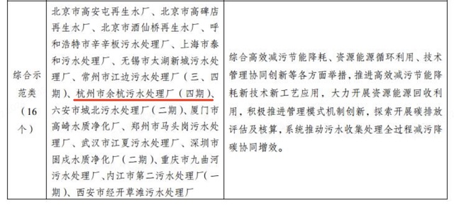 高效減污節能降耗類標桿廠