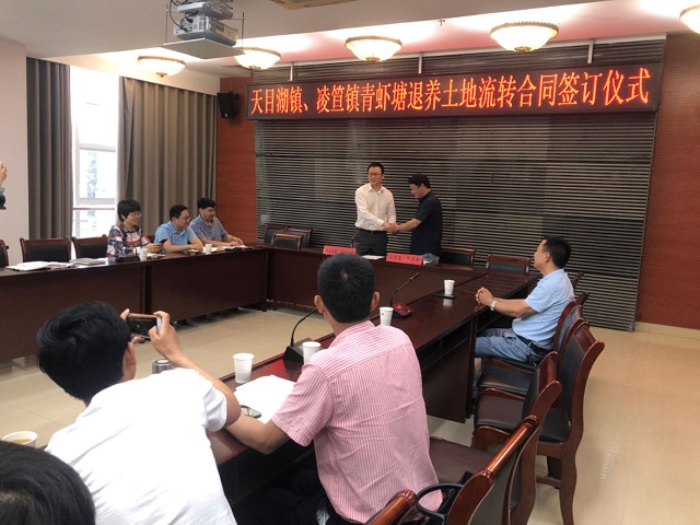 橫跨江蘇省溧陽市和安徽省宣城市郎溪縣的洙漕河流域青蝦養殖業發達,大量養殖尾水排入洙漕河,影響下游天目湖水質。為保護天目湖的水質和生態,郎溪縣凌笪鎮與溧陽市天目湖鎮攜手探索生態保護補償模式,共同實施洙漕河生態小流域上游青蝦養殖塘生態治理工程。郎溪縣與江蘇天目湖生態水源地建設有限公司簽訂《農村土地承包經營權流轉及退養費用協議》,先后退養青蝦養殖塘3000余畝,補償一次性退養補貼2000余萬元,并每年每畝支付流轉土地承包管理服務費,用于進一步涵養水質、處理生活垃圾等。退養后的蝦田經天目湖鎮承包接管,改造后進行高標準農田建設,實施統一經營、規模化種植,提高了土地利用價值,將進一步發展綠色農業品牌。