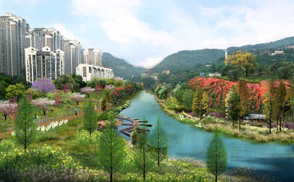 規劃旨在綜合采用“凈、蓄、滯、滲、用、排”等措施,將70%的降雨就地消納和利用,完善生態格局、改善水環境、修復水生態、加強水安全、保障水資源,建設“具有山地特色的立體海綿城市”。
