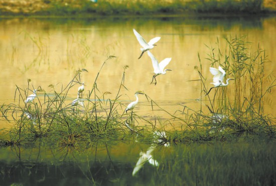 劉立國是一名攝影愛好者,總是將鏡頭對(duì)準(zhǔn)家鄉(xiāng)的河。以前,泃河多半年斷流,水少的季節(jié),鳥也不愛來,隻能拍攝河邊的花草和建筑。前幾年河裡有了水,泃、洳兩河交匯處常有鳥友蹲守,有從城裡來的,也有從周邊來的,他就曾目睹上百隻白鷺傍晚翔集。