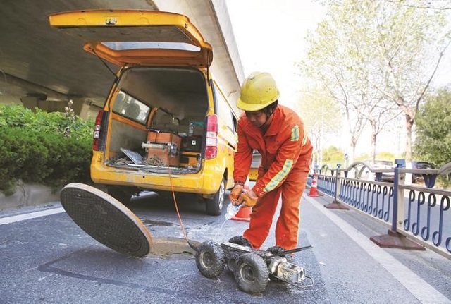 管道疏通工作結束后,一臺外觀酷似玩具汽車的CCTV檢測機器人被放入雨水管道,機器人沿管道爬行的同時,管道內部的實時高清畫面被傳輸到一旁的監視器上。技術人員對管道接口處有無裂縫,管內淤積以及破損、滲漏、錯位等結構病害進行排查判斷,制訂下一步的修復計劃。“我們已經對全市500余公里的雨水管網進行了清淤和檢測,修復病害478處,修復管網長度達1520米,”張哲夫說,“采用非開挖修復的方式,減少了對市民出行的干擾,更是大大降低了維修成本,提升了地下管理的‘軟實力’?!?br />