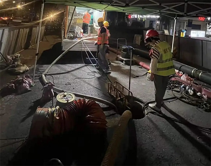 在修復(fù)過(guò)程中,項(xiàng)目團(tuán)隊(duì)依托先進(jìn)技術(shù)手段,針對(duì)滲漏、破裂、錯(cuò)口、樹(shù)根侵入等不同類(lèi)型的管道病害,分類(lèi)采取非開(kāi)挖修復(fù)技術(shù)為主、局部開(kāi)挖為輔的施工策略。對(duì)管徑小于d800的管道,采用局部樹(shù)脂固化法和紫外光固化內(nèi)襯修復(fù);對(duì)大于d800的管道,則使用不銹鋼快速鎖和紫外光固化技術(shù)進(jìn)行加固。尤其在塌陷段,采取局部更換再加整體加固的方式,最大限度減少對(duì)路面交通和周邊環(huán)境的影響。