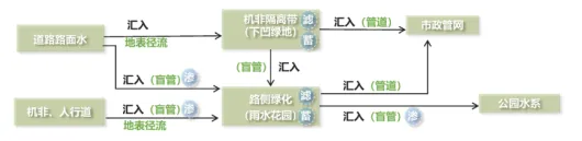 道路排水系統(tǒng)作為人工紐帶,是“四網(wǎng)協(xié)同”理念落地的重要載體。隨著海綿道路、行泄通道等設(shè)計理念的提出,道路排水系統(tǒng)突破了傳統(tǒng)排水通道的單一導(dǎo)排功能,成為集雨洪傳輸、徑流凈化、生態(tài)連通、資源利用于一體的復(fù)合性功能載體。一方面,其承接路網(wǎng)地表徑流,實現(xiàn)雨水從道路到管網(wǎng)、水網(wǎng)的有序?qū)牛行Ь徑夤芫W(wǎng)排水負荷,降低城市內(nèi)澇風險;另一方面,道路排水系統(tǒng)與林網(wǎng)深度融合,在雨水徑流傳輸過程中同步完成污染削減,實現(xiàn)雨水自然凈化;此外,當管網(wǎng)轉(zhuǎn)輸能力不足時,道路排水系統(tǒng)作為行泄通道可承接管網(wǎng)溢流雨水,為多余雨水提供應(yīng)急出路,同時結(jié)合調(diào)蓄設(shè)施實現(xiàn)雨水臨時儲存,為雨水資源回收利用創(chuàng)造條件。因此,通過優(yōu)化道路排水系統(tǒng)設(shè)計,實現(xiàn)路網(wǎng)、管網(wǎng)、水網(wǎng)、林網(wǎng)的有效銜接,可解決城市生態(tài)空間的連通性斷裂問題。